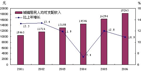 圖3 2001-2006浙江省城鎮居民收入及其增長速度