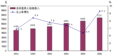 圖4 2001-2006年浙江省農村居民收入及其增長速度