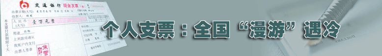 重慶:個人支票可通用卻無人辦理 今年6月26日開始,個人支票開始全國通用,但記者從重慶市多家銀行了解到,個人支票全國通用半個月以來,不要說使用,就連到銀行辦理個人支票的人也寥寥無幾。[詳情] |