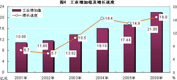 全年工業企業實現增加值21.65億元,比上年增長16.8%,其中鄉及鄉以上工業企業實現增加值20.95億元,增長19.8%。全區鄉及鄉以上工業企業實現產值37.40億元,比上年增長20.9%。其中:輕工業實現產值13.61億元,增長0.6%;重工業實現產值23.79億元,增長37.1%。國有及國有控股企業全年實現產值21.80億元,比上年增長9.4%。按登記注冊類型分, 國有企業實現產值13.57億元,增長10.5%;集體企業實現產值5.37億元,增長15.4%;股份制企業實現產值13.56億元,增長38.7%;股份合作企業實現產值0.99億元,增長18.7%;外商及港澳臺企業實現產值2.51億元,增長13.3%;其他經濟類型企業實現產值1.41億元,增長4.6%。鄉及鄉以上工業企業產品銷售率92.0%。