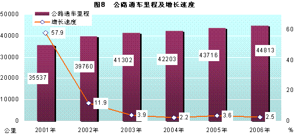 全年完成貨運量359.63萬噸,比上年下降2.7%,其中:公路運輸完成346.00萬噸,下降3.1%;鐵路運輸完成2.10萬噸;航空運輸完成1.08萬噸,增長42.8%;管道運輸完成11.4萬噸,下降3.0%。全年客運總量605.61萬人次,增長26.3%,其中:公路運輸完成444.80萬人次,增長25.1%;鐵路運輸完成27.90萬人次;航空運輸完成122.91萬人次,增長19.5%。 年末公路總通車里程44813公里,比上年增加1334公里,其中有鋪裝路面總里程1984公里,增加481公里。