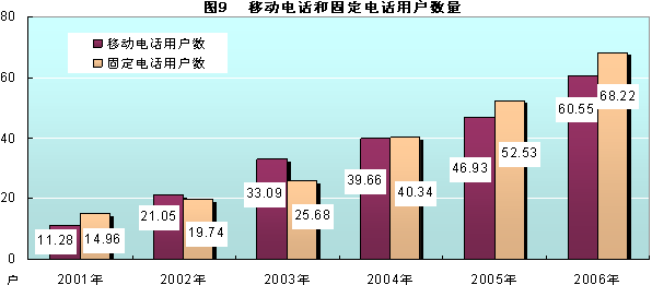 用戶3.25萬戶。新增移動電話交換機14.00萬門,總容量達80.00萬門。新增移動電話用戶13.62萬戶,達到了60.55萬戶。年末全區固定及移動電話用戶總數達到128.77萬戶,比上年末增加29.29萬戶。電話普及率達到46.5部/百人。