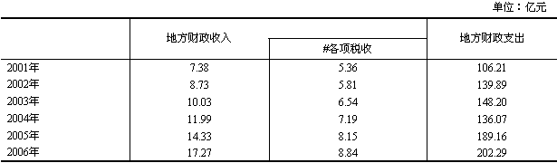 全年完成地方財政收入17.27億元,按同比口徑計算,比上年增長20.5%。其中一般預算收入14.56億元,增長21.0%。在一般預算收入中,增值稅增長27.2%,營業稅增長4.7%。地方財政收入占GDP的比重為6.0%。 財政總支出202.29億元,按同比口徑計算,比上年增長6.9%。其中一般預算支出200.20億元,增長8.0%。