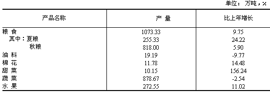 全年全省農作物總播種面積382.3萬公頃,比上年增加2.8萬公頃,增長0.7%。其中糧食作物種植面積為312.2萬公頃,增長2.9%,在糧食作物種植面積中,高產作物玉米的種植面積達到122.6萬公頃,增長3.5%。 糧食總產量達到1073.3萬噸,比上年增產9.8%,是我省歷史上的第3個高產年。其中,夏糧總產255.3萬噸,增產24.2%;秋糧總產818.0萬噸,增產5.9%。