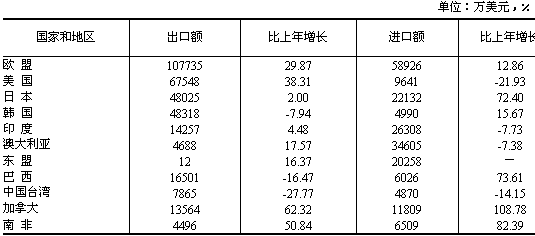 表7:2006年對主要國家和地區進出口情況