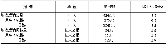 表9:2006年各種運輸方式完成旅客運輸量
