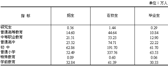 年末全省高等院校達到72所,山西大同大學經教育部批準于2006年正式成立。全省高等教育毛入學率達到23.0%,高中階段毛入學率達到69.0%。全省獨立設置的成人高等學校在校學生2.0萬人,學歷教育招生0.6萬人,成人中等專業學校在校學生1.7萬人,成人技術培訓學校共培訓結業的職工、農民分別為40.7萬人次、135.9萬人次。全年掃盲班結業1.0萬人。
