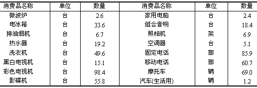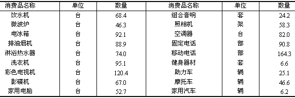 城鎮每百戶居民家庭主要耐用消費品擁有量