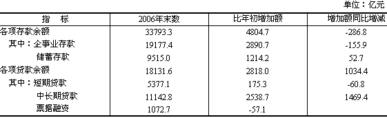 金融:年末全市金融機構(含外資)本外幣存款余額33793.3億元,比年初增加4804.7億元,同比少增286.8億元;其中人民幣存款余額31313.8億元,比年初增加4511億元,同比少增552.5億元。金融機構(含外資)本外幣貸款余額18131.6億元,比年初增加2818億元,同比多增1034.4億元;其中人民幣貸款余額15632.7億元,比年初增加1820億元,同比多增561.6億元。