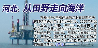 | 今年初,河北省政府批準設立滄州渤海新區,決定從產業發展、基礎設施、財政稅收以及土地、海域使用等多方面給予大力支持,力爭使滄州成為繼唐山曹妃甸工業區之后全省第二大經濟增長極和實施"東出西聯"戰略的橋頭堡。[詳情] | |