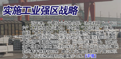| 記者近日從寧夏回族自治區發展改革委員會獲悉,這個偏處中國西北內陸的少數民族自治區正在投巨資建設亞洲最大的煤化工基地--寧東能源化工基地。這項被寧夏稱為"一號工程"的建設項目在2006年--2010年間投資將超過1000余億元。[詳情] | |