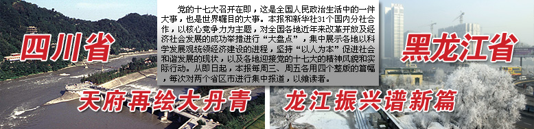 作為我國西部人口大省、農業大省,四川省的經濟社會發展歷來受到各界的關注。四川省發展和改革委員會主任解洪日前在接受記者采訪時,從宏觀及微觀層面展示和分析了四川經濟發展的特點、發展潛力及未來走勢。 解洪說,今年召開的四川省第九次黨代會明確提出,未來5年,全省將圍繞"堅持科學發展、構建和諧四川"的主題。[詳情] | |