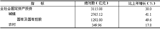 全省全社會固定資產投資3115.08億元,比上年增長38.0%,其中,城鎮投資增長41.1%,農村投資增長17.8%(見表5)。