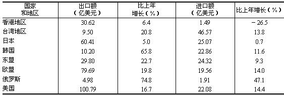 表7:2006年對主要國家和地區進出口情況