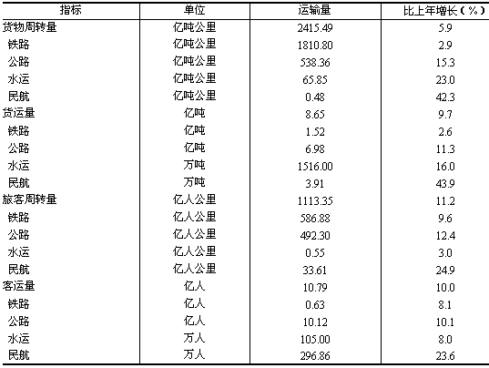 全年全省交通運輸、倉儲及郵政業實現增加值737.88億元,比上年增長9.9%。 年末全省鐵路通車里程3944.2公里;高速公路通車里程3439公里。全年各種運輸方式完成貨物周轉量2415.49億噸公里,比上年增長5.9%;完成旅客周轉量1113.35億人公里,增長11.2%。 全年全省郵電業務總量722.74億元,比上年增長28.8%。其中,郵政業務總量36.52億元,增長14.8%;電信業務總量686.22億元,增長29.6%。年末局用電話交換機總容量2582.50萬門,新增233.71萬門;本地固定電話用戶2027.20萬戶,新增163.70萬戶;移動電話用戶2345.00萬戶,新增530萬戶。電話普及率為44.8部/百人,增長18.0%。年末計算機互聯網用戶327.30萬戶,新增52.26萬戶。