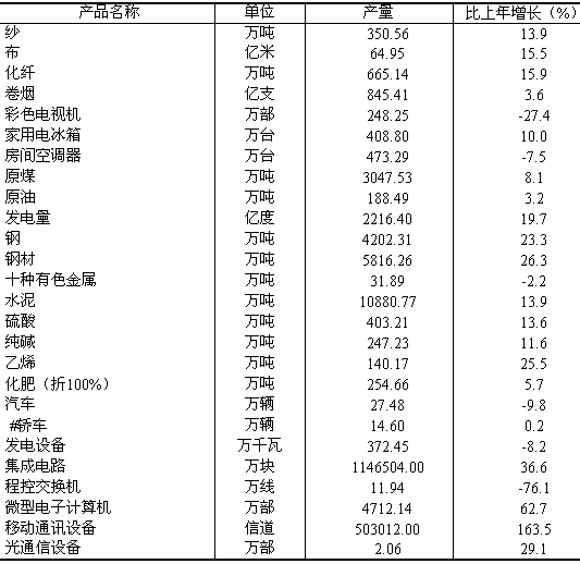 表3 主要工業產品產量情況