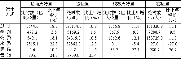 384.15億元,分別比上年增長10.7%和31.1%。 交通運輸業發展較快。全年完成旅客運輸量、貨物運輸量分別比上年增長11.1%和10.8%,旅客周轉量、貨物周轉量增長11.9%和18.8%。完成港口貨物吞吐量8.5億噸,增長16.4%,其中外貿貨物吞吐量1.35億噸,增長18.2%。年末全省公路里程12.69萬公里,新增3200公里;鐵路營業里程1602.7公里,鐵路正線延展長度2301.1公里。年末民用汽車保有量240.8萬輛,增長25.3%;其中本年凈增汽車48.55萬輛,增長56.3%。年末私人汽車保有量148.37萬輛,其中本年凈增汽車38.94萬輛,分別增長35.6%和24.7%。年末私人轎車保有量90.11萬輛,其中本年凈增轎車29.36萬輛,分別增長48.3%和45.9%。