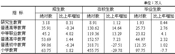 表8 各類教育招生和在校生情況