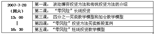 課程將詳細講解零風險投資十大法則、經典股市理論的零風險操作策略、高拋低吸的1/4買賣法則、如何尋找最佳入市點,以及適合不同類型股票的各種建倉及資金管理方法等。