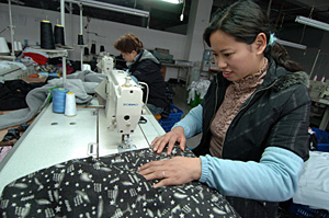 | 幾位工人在服裝廠內制作服裝。如今越來越多的農業剩余勞動力正在向非農領域轉移。本報記者 王定昶