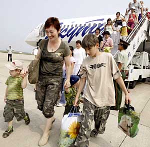 7月29日,一架滿載俄羅斯游客的圖-154飛機降落在山海關機場,秦皇島首條國際航線開通。據悉,明年奧運會前,山海關機場還將開通日、韓等多條國際航線。CFP圖片