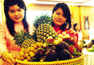 山竹、蓮霧、芒果、羅望子、番石榴……昨天(2日),來京參加2008年奧運推薦果品評選活動的泰國水果在人民大會堂亮相。此次來京的泰國水果一共有12種,全部是泰國的名果。