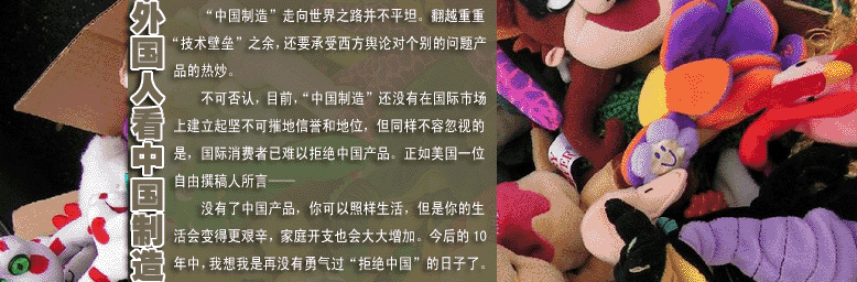 英國連鎖玩具店哈姆利對小朋友們有著非凡的吸引力。位于倫敦著名商業街攝政街上的哈姆利總店總是一派熱鬧景象。在這家店里,帶“中國制造”標簽的玩具比比皆是。店員和顧客也都稱贊說,來自中國的玩具造型可愛,是孩子們的好伙伴。這座六層高的建筑就像一個游樂園,進門十幾步遠處有一座“模擬叢林”,仿真的獅子、大猩猩、長臂猿、長頸鹿向光顧的客人在招手。[詳情] | |