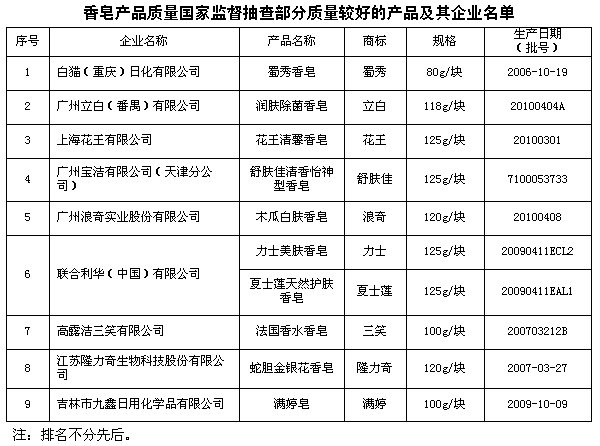 為了維護消費者的合法權益,促進香皂行業健康發展,國家質檢總局組織對香皂產品質量進行了國家監督抽查,共抽查了北京、天津、吉林、上海、江蘇、安徽、浙江、湖南、湖北、河南、山東、廣東、貴州、廣西、重慶等15個省、直轄市、自治區32家企業生產的50種產品(不涉及出口產品),產品實物質量合格率為96%。