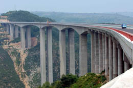 還在幾年前,開車從陜西省會西安到陜北的延安、榆林等地所需要的時間要以天計,而現在這個時間已經分別縮短至三個多小時和五個多小時。飽嘗交通閉塞之苦的陜西省,在推進鐵路建設的同時,也致力于加快公路建設,編織縱橫三秦大地的公路網。 “十五”期間,陜西省公路建設投資不斷攀升,全省交通固定資產投資累計完成675億元,是“八五”和“九五”10年投資總和的近三倍。五年間,陜西新增公路一萬公里,全省公路總里程達到五萬多公里。目前,陜西省高速公路通車里程達到1600多公里,2007年底將突破2000公里。陜西省交通廳廳長曹森表示,“十一五”末,陜西省公路總里程將達到六萬公里,高速公路通車里程達到3100公里,五年新增里程1800公里;全省85%以上的縣(市、區)一小時進入高速公路網,西安至周邊省(區)中心城市“一日交通圈”形成! 為改變農村公路的落后面貌,陜西省還加大了通村公路的建設力度,2006年全省建成通村公路14000公里,使5000個建制村的農民走上了油路、水泥路,極大緩解了農民“出行難”問題。根據規劃,陜西省在“十一五”期間計劃安排資金200億元以上,新建、改建和鋪筑油路(水泥路)約九萬公里,其中安排通村公路建設約六萬公里,使全省擁有通村公路的建制村比例由目前的29%增加到80%。