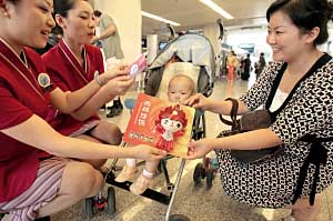 南航北京分公司昨天(8日)宣布,“五彩中國-南航行”北京站活動正式啟動。從8月8日至今年年底,南航北京-廣州、深圳,北京-?、三亞往返航線機票實施“一票通”。 凡旅客購買8折(含)以上散客客票,在廣州至北京、深圳至北京、北京至廣州、北京至深圳單程或往返程航線,可將始發地或目的地的廣州和深圳進行互換;凡旅客購買5折(含)以上散客客票,在?谥帘本、三亞至北京、北京至?、北京至三亞單程或往返程航線,可將始發地或目的地的?诤腿齺嗊M行互換。航班互換不收取任何更改費用。 圖為南航工作人員在首都機場向旅客送上“福娃”禮品。 | |