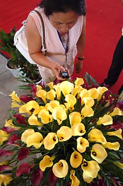 一位市民在花卉博覽會上拍攝。 | 云南是當之無愧的“中國花卉產業大省”。據云南省花卉產業聯合會統計,2006年云南省花卉產業總產值71.99億元;自1994年以來,云南鮮切花產量已連續13年雄踞全國第一,在全國鮮切花消費市場上,云南鮮切花占據70%左右的市場份額。 “云花”為什么這樣“紅”?云南省花卉產業聯合會有關人士分析,原因之一是云南有著得天獨厚的氣候和地理條件,另一方面則與云南地方政府的大力扶持密切相關。 云南獨特的立體氣候,使各種氣候類型的花卉,無論溫帶的還是熱帶、亞熱帶的,都能在這里找到自己的適生地。尤其在以昆明、玉溪為中心的滇中地區,冬無嚴寒、夏無酷暑,世界主要鮮切花品種在這一帶都能實現周年規;a,而且品質優良。 “十五”以來,云南省委、省政府把發展花卉產業作為實施綠色經濟強省戰略的重要內容,從政策扶持、資金投入、環境條件等方面采取一系列措施,促進花卉產業發展。云南省登記在冊的花卉及相關企業達1028家,從事鮮切花、盆花及食用、藥用、工業用花卉生產和園林綠化苗木生產的農戶達8.7萬余戶。 在產業規模實現快速發展的同時,云南花企注重擁有自主知識產權的花卉新品種研發。據省花產聯統計,截至今年5月底,云南花企和科研單位擁有鮮切花新品種自主知識產權證書達23個,還有一批新品種已經通過初審。有的花農也自發購買國外專利新品種花卉,以提升產品質量。2006年5月,呈貢縣花農魯榮華通過代理機構,向德國坦陶公司引進1萬株玫瑰新品種“櫻桃白蘭地”,一時間在業界引起轟動。 盡管在產業規模等方面實現了快速發展,但云南花卉產業也存在不少困難和問題。去年10月,云南省政府出臺了《關于加快發展出口導向型花卉產業的意見》,《意見》提出:到2010年,云南花卉產業總產值力爭實現140億元,出口率30%以上!笆晃濉逼陂g云南要進一步加快花卉產業發展步伐,推進實施優質花卉倍增、國際市場拓展、物流運輸通暢、品種研發創新、“云花”品牌打造五大工程,繼續保持“云花”在國內市場的領先地位,并把云南花卉建成優勢明顯的出口導向型產業。 |