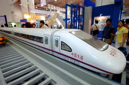 大連正在建設的準磁懸浮列車模型。本報記者:任勇 攝