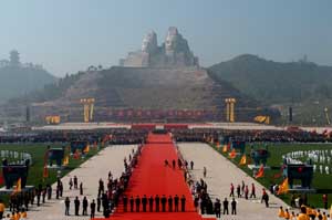 | 4月18日,106米高的炎黃二帝巨型塑像在鄭州黃河風景區落成。攝影/本報記者 趙鵬 |