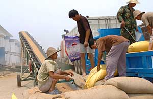 | 中央儲備糧河南漯河直屬庫工作人員將新收購的小麥除雜入庫。攝影/本報記者