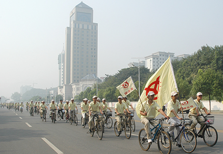 新華網湖北頻道9月17日電 9月16日,黃石市2007年首屆城市公共交通周及無車日活動啟動儀式在人民廣場隆重舉行。市領導帶隊,與市民代表3000多人參加了步行,900人參加了環湖自行車賽等活動,大力倡導我市“綠色交通與健康”。
