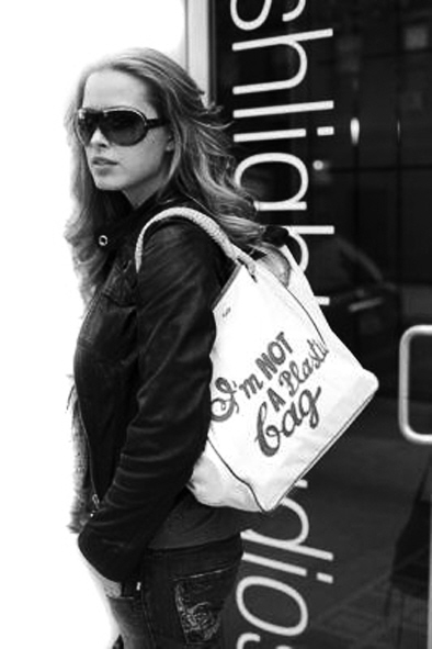 bag.(我不是塑料袋)”,在倫敦上市當天就被搶購一空。7月6日,該款包在我國臺灣發售時,竟然引發了因強烈推擠導致的受傷事件。據說為了以防更多擠傷事故的出現,這款包取消了在中國內地的限量發售。這只風靡整季、把環保風刮遍全球的帆布包,就是來自倫敦的著名手袋品牌AnyaHindmarch的杰作。 奢華的皮草、層出不窮的電子產品……時尚似乎一直與環保有著天生的距離。時尚人士對于皮草的狂熱,對于羊絨的鐘愛,對于山珍海味的貪婪,都是讓很多環保人士為之抗議和保持高度警惕的。但“我不是塑料袋”似乎改變了一切。