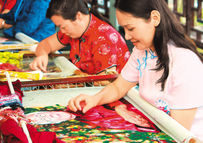 9月26日,幾名蘇州繡娘在刺繡藝術館展示刺繡技能。王建中 攝