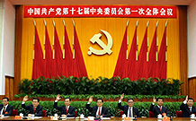 中國共產黨第十七屆中央委員會第一次全體會議公報 (2007年10月22日中國共產黨第十七屆中央委員會第一次全體會議通過) 中國共產黨第十七屆中央委員會第一次全體會議,于2007年10月22日在北京舉行。 出席會議的有中央委員204人,候補中央委員l66人。中央紀律檢查委員會委員列席會議。 胡錦濤同志主持會議并作了重要講話。[詳情] |