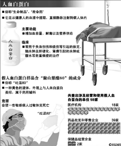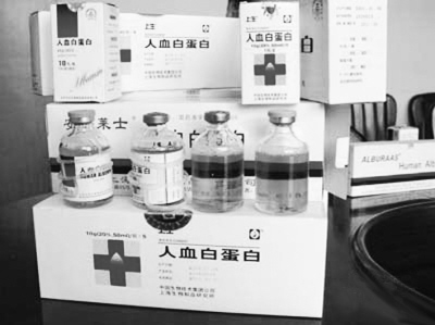 人血白蛋白俗稱“生命制品”、“救命藥”,是從健康人的血液中提取,直接靜脈注射到病人體內,主要用于癌癥術后、燒傷病人、休克、顱壓升高、水腫等病癥的臨床急救特殊藥品。 “這種藥臨床上用量很大,一般重癥病人都需要用,正常人體內可生成白蛋白,但病人則需要注射白蛋白來提高機體免疫力,有助病人康復!奔质纫患掖筢t院的院長說。