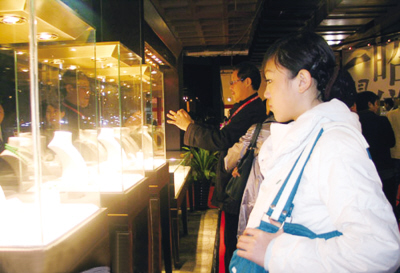 11月1日,“2007中國國際珠寶展”在京開幕,共有來自國內和意大利、泰國、韓國、美國、波蘭、新加坡等12個國家和地區的500余家頂級珠寶企業參展。在展會上,一只由國內知名翡翠品牌七彩云南展出的價值2600萬元的翡翠手鐲“春水含風”吸引了眾多參觀者駐足觀賞。
