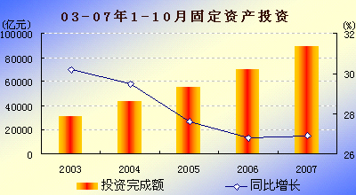 1-10月份,城鎮固定資產投資88953億元,同比增長26.9%。其中,國有及國有控股完成投資38800億元,增長16.6%;房地產開發完成投資19192億元,增長31.4%。 從項目隸屬關系看,中央項目投資8830億元,同比增長13.8%;地方項目投資80123億元,增長28.6%。 從產業看,第一、二、三產業分別完成投資1070億元、39048億元和48835億元,同比分別增長39.9%、29.6%和24.7%。 從行業看,煤炭開采及洗選業投資1258億元,同比增長24.2%;石油和天然氣開采業投資1440億元,增長12.3%;非金屬礦制品業投資2159億元,增長53.5%;黑色金屬礦冶煉及壓延加工業投資1982億元,增長14.5%;有色金屬礦冶煉及壓延加工業投資983億元,增長33.4%;電力、熱力的生產與供應業投資6017億元,增長9.4%;鐵路運輸業投資1590億元,增長7.9%。 從注冊類型看,內資企業投資78995億元,同比增長27.2%;港澳臺商投資和外商投資分別完成4210億元和5254億元,分別增長30.7%和19.2%。 從施工和新開工項目情況看,截止到10月底,城鎮50萬元以上施工項目累計282512個,同比增加33643個;施工項目計劃總投資230757億元,同比增長18.7%;新開工項目191086個,同比增加22518個;新開工項目計劃總投資66704億元,同比增長26.5%。 從到位資金情況看,城鎮投資到位資金100141億元,同比增長28.9%。其中,國內貸款增長14.3%,利用外資增長17.5%,自籌資金增長32.7%。 |