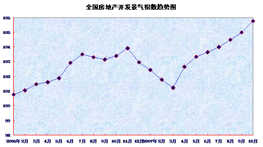 10月份,“國房景氣指數”為105.74,比9月份上升0.75點,同比上升2.34點。