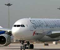 12日,首都機場停機坪上出現8架星空聯盟飛機。明年3月,首都機場3號航站樓將成為星空聯盟在中國的大本營。[詳情] | |