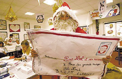 聯合國郵政機構日前發表聲明說,盡管當今電子郵件和手機短信盛行,圣誕老人去年還是收到了600多萬封手寫信件。圖為日前在法國西部利布爾訥郵政局內,一名身著“圣誕老人”服飾的員工查看世界各地孩子寫給圣誕老人的信件。新華社 發
