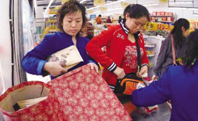 | 在成都一家超市,收銀員用紙袋為顧客裝購買的商品 | 國務院辦公廳下發的《關于限制生產銷售使用塑料購物袋的通知》要求,從今年6月1日起,所有超市、商場、集貿市場等商品零售場所將告別免費塑料袋,實行有償使用制度。
