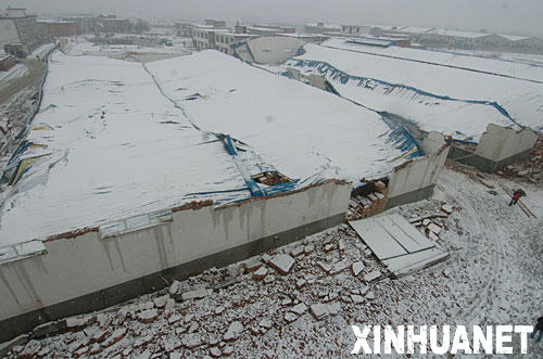 安徽合肥:暴雪壓塌四千多平方米倉庫