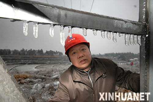 湖南電網遭遇罕見冰災(1月23日攝)。