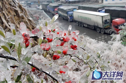 受北方強冷空氣的影響,自本月12日以來,貴州大部分地區氣溫持續降低,出現了罕見的凝凍天氣,致使境內多條高速公路凝凍,有在外地打工返鄉的民工竟被困路上三日三夜。面對這幾十年不遇的雪災,當地公路管理部門共在路面上灑下700噸鹽稀釋冰塊。至昨(22)日上午,受困高速公路的車輛有3800輛左右,受困人員為2萬余人。 |