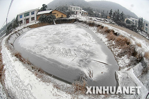 | 這是湖南寧鄉縣境內一處冰凍的水塘(1月25日攝)。 | |