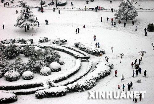 1月26日,南京市民在一公園內賞雪游玩。新華社記者 韓瑜慶 攝